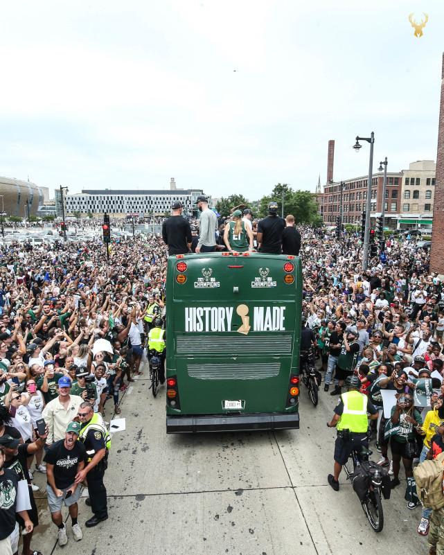 镜头拍到整个游行的路线上可谓是“人山人海”,据此前媒体报道,这次游行将有50万-100万人参加。时隔50年再次夺冠,确实相当难得。由于夺冠游行安排在工作日,雄鹿官方也提前为球迷们准备了请假信模板。看来,球迷们都被准假了,这一天的欢声笑语,对于这座城市而言,注定将成为未来多年的美好记忆。