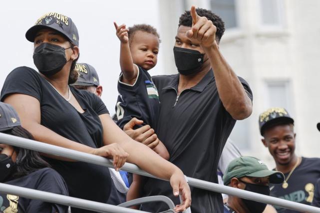 字母哥的儿子莱姆也正式亮相,和爸爸一起庆祝夺冠。莱姆被称为“希腊小怪兽”,美媒调侃多支球队现在就已经盯上他了。