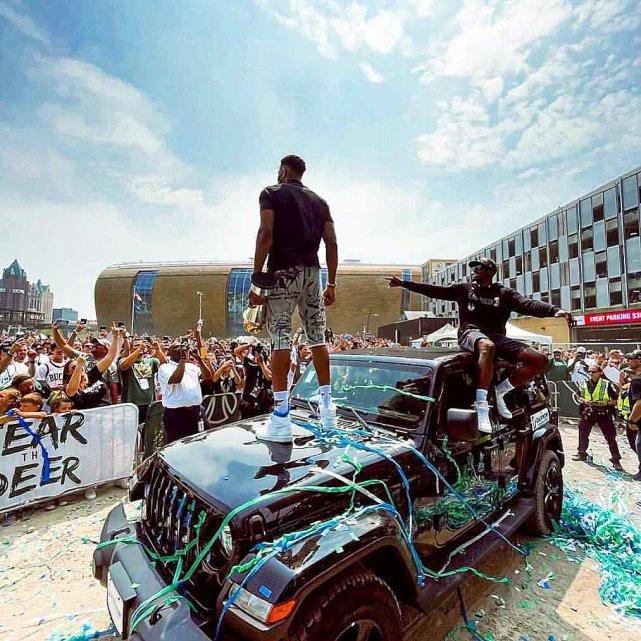 JRS直播网讯 北京时间7月23日,时隔50年夺冠的雄鹿队,在密尔沃基举办了盛大的夺冠游行。字母哥和他的队友们,捧起总冠军奖杯,和球迷们分享着夺冠的喜悦。在这次夺冠游行中,不乏一些亮点——