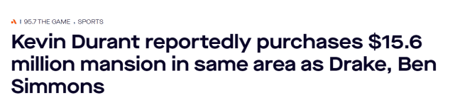 JRS直播网讯 北京时间7月23日,篮网球星凯文-杜兰特在洛杉矶的隐山(Hidden Hills)某社区斥资1560万美元购置了一套豪宅,有趣的是不到一个月前,本-西蒙斯也在同一社区买下一套房产,他花了1750万美元。换言之,杜兰特和西蒙斯成了邻居,美媒调侃:杜兰特可以在休赛期教西蒙斯罚球了。