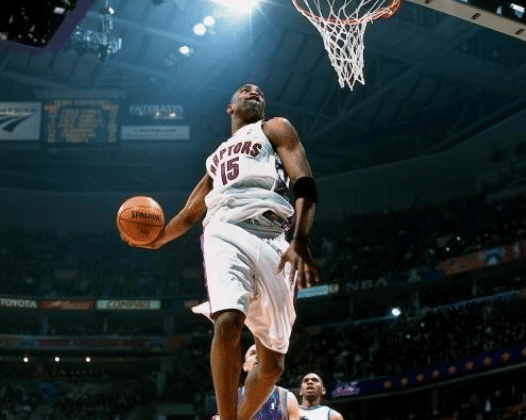 卡特是1998年第五顺位被勇士选中进入NBA的。后期和贾米森互换东家来到了猛龙。菜鸟赛季的卡特,场均就交出了18.3分5.8篮板3.2助攻的数据,并且获得了当年的“年度最佳新秀”。第二年,极速成长的卡特便参加了2000年的扣篮大赛,并凭借“篮板后转体180°接球大风车扣篮”获得了扣篮大赛冠军。卡特扣篮,虽不说是后无来者,但一定是前无古人的存在。