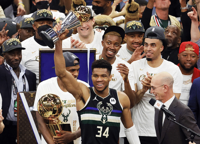 JRS直播网讯 北京时间7月21日,本赛季NBA正式落下帷幕,在总决赛先输掉两场系列赛后,雄鹿队连胜4场,最终以4-2大比分逆转太阳队取得胜利,而字母哥本场比赛25中16,取得50分14篮板5盖帽的超级数据,再加上在前面几场比赛取得的不俗数据,字母哥毫无悬念夺得总决赛MVP,值得一提的是,今年夺冠之后,字母哥也仅仅只有26周岁。