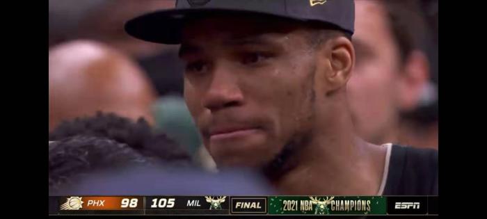 赢球了,字母哥成功地帮助球队把总冠军带回到了雄鹿队,在夺冠之后,字母哥也是泪洒现场,在这个最重要的时刻,这个从希腊贫民窟走出的家伙第一时间找到了自己的家人,并且把自己的家人带到了场地的中间,字母哥明白,没有他们,他不会来到NBA。