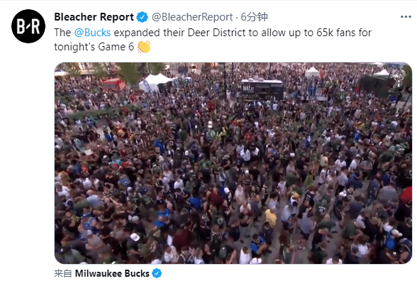 此前雄鹿队在球馆周围布置了很多舞台和大屏幕以及其他主队元素,这就相当于是雄鹿主场的扩展,准备了一个更大的集中观赛区;目前雄鹿球馆外人山人海,现场挤满了球迷;很明显,他们都想亲眼见证雄鹿队的荣耀时刻,大概65000人聚集在一起。