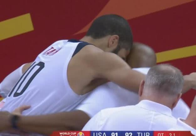 其实,塔图姆“没能参加2019世界杯”的说法并不准确,他在2019世界杯的确是入选了美国男篮大名单,还曾在小组赛阶段,面对土耳其男篮时命中了一记高难度绝平三分球,但是后来因为脚踝受伤没能参加剩余的比赛。而到了今年,塔图姆的“复仇之旅”恐怕并不顺利,在今天美国男篮83-76击败西班牙男篮的比赛中,塔图姆10投仅3中得到6分,还需要时间来调整状态。