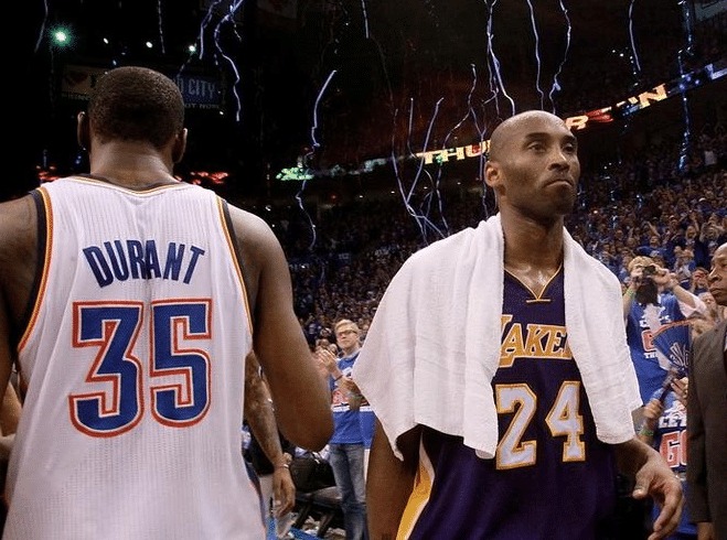 相比杜兰特,科比的进攻效率要低很多。但科比胜在进攻全面。看过科比打球的人都知道,科比在比赛中受到的防守待遇远大于其他球星,他常常在2~3人的包夹中将球打进。科比的得分技巧实在太多了,他能突破,能投篮,能背打,能空切。尤其是行进中的后仰跳投,常常让科比在多人防守的情况下,潇洒出手,完成绝杀。科比是古典篮球的代表,不惧怕任何身体对抗。常常用中距离、背打决定比赛的胜负胜负。