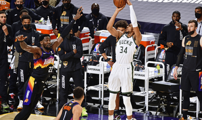 JRS直播网讯 北京时间7月18日,NBA总决赛G5天王山之战结束争夺,最终雄鹿逆转击败太阳,双方系列赛比分来到3-2雄鹿取得领先。这场比赛双方打得大开大合,首节太阳领先16分,不过次节很快雄鹿就反超比分。下半场的鏖战,雄鹿在霍乐迪和字母哥的带领下建立优势,而太阳这边布克独木难支,末节鏖战,霍乐迪关键抢断布克,字母哥制胜暴扣,最终雄鹿成功逆转获胜,拿下天王山之战的胜利,夺得系列赛赛点,也是总冠军赛点。