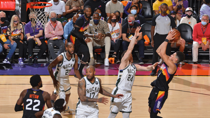 这样总决赛G6将会去到密尔沃基进行,究竟是雄鹿主场夺冠,0-2落后的情况下连扳4场夺魁,还是太阳攻陷客场,将系列赛拖入到抢七的总决赛直接争夺战,就看三天之后两队的表现了。