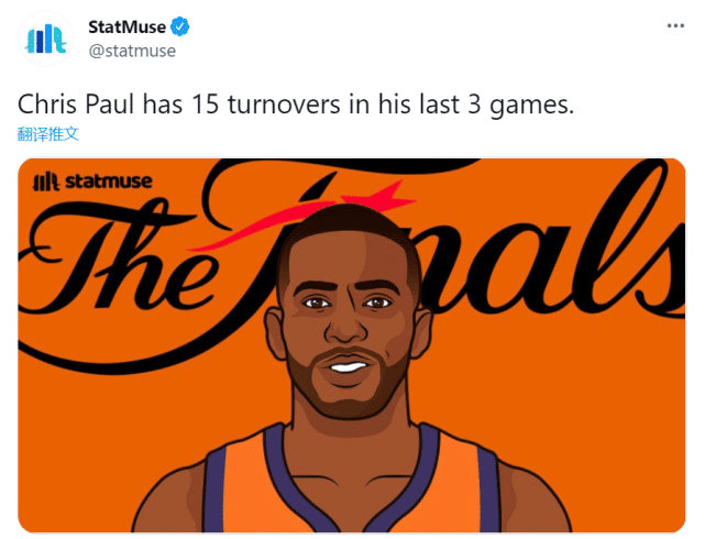 据统计,保罗在过去三场季后赛中一共出现了15次失误,是其个人自2012年以来的最多失误次数。而保罗在今年季后赛里,面对雄鹿的总决赛,是他今年场均失误最多的系列赛。