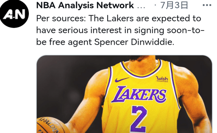 今夏如果可以加盟到家乡球队湖人的话,丁威迪就可以很好的解决球队的后卫难题,同时还可以联手詹姆斯、浓眉哥等人一起冲击总冠军。上个赛季和杜兰特、欧文合作,下个赛季有希望和詹姆斯、浓眉哥联手,这对于现在是自由人的丁威迪来说也是一个不小的诱惑。
