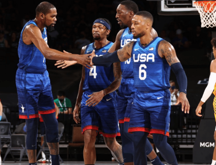 而时隔2年之后,梦之队重新集结,招揽到了杜兰特,利拉德,比尔等顶级得分手,目标是冲击金牌,但热身赛2连败,创造队史热身赛尴尬纪录,第一次在热身赛中遭遇连败,可能还会有3连败。