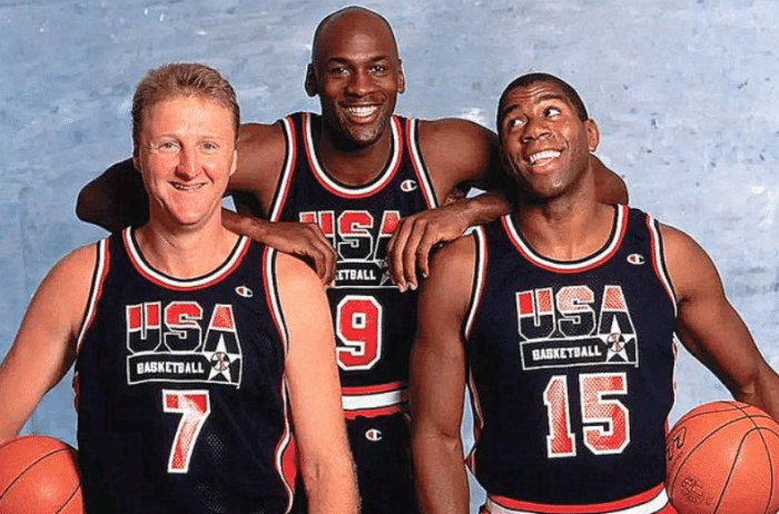 这就延伸出一个问题,美国男篮真的有那么强大吗?其实,美国队在过去30年里,之所以在国际大赛(奥运会)中所向披靡,简单来讲,只是吃了乔科詹的红利。其他球星很棒,但这三位却无人能代替。