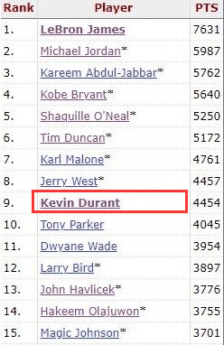 显然,保罗是一个传统控卫,得分不是保罗的第一选择,而且保罗以前在季后赛的竞争力比较缺乏,时常触摸不到西决地板的保罗,个人季后赛总得分不会太高,或许很难超越4000分的档次,现役里面球星里面超越4000分档次的只有杜兰特和詹姆斯。