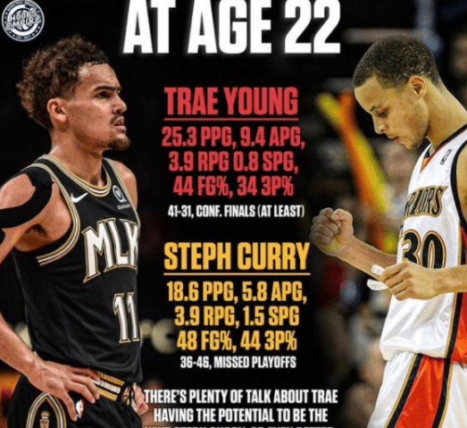对于特雷杨的发挥,也是有球迷将同期的库里进行对比。当初22岁的库里,同样是球队的核心之一,在那个赛季里,最终是带领球队以36胜46负结束赛季,最终并没有进入到季后赛。至于个人数据上,场均能够贡献18+5+4的数据,投篮命中率能够得到48%,三分线外命中率达到4%。从两人的带队能力进行对比,如今的特雷杨无疑是要比当初的库里强许多。今年仅仅只是他进入联盟的第三年,就能够带队进入到东决的舞台,单单从这一点,就能够看出他的实力。至于数据上,在进攻端特雷杨自然是要比库里强许多,但在助攻数据上,其实两人也是差不多。最后就是在命中率上,库里无疑是比特雷杨稳定的多。