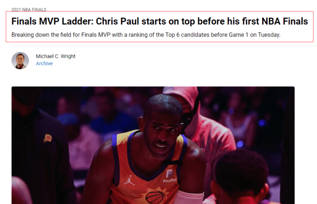 JRS直播网讯 北京时间7月6日,雄鹿太阳总决赛将在明天正式开打,联盟官网在今天发布了本次总决赛第一期最有价值球员排行榜,其中克里斯保罗排在第一位。
