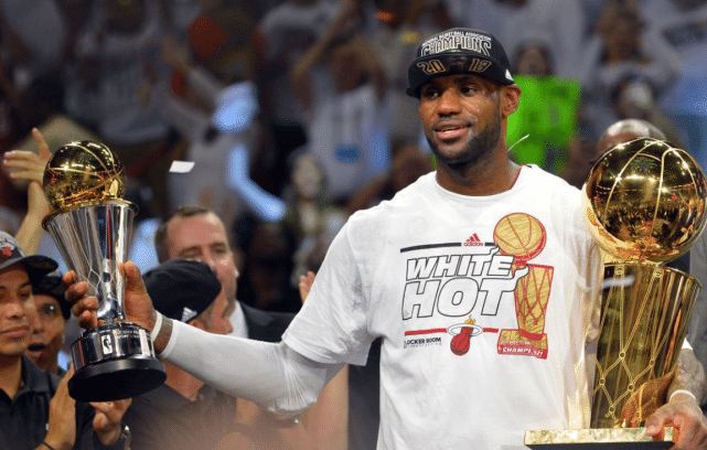 值得一提的是,过去9年总决赛最有价值球员,全部都是由小前锋包揽!2012年,热火4比1轻取雷霆,詹姆斯生涯首次夺冠并拿下FMVP。2013年,热火4比3击败马刺实现卫冕,詹姆斯蝉联总决赛最有价值球员。2014年,马刺4比1复仇热火,小卡拿下比尔拉塞尔杯。