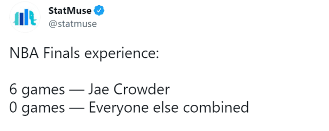 在今年的总决赛舞台上,克劳德还是唯一一个有过总决赛经验的球员,他打了6场总决赛,不算多,却也相当宝贵。你们认为克劳德能帮助太阳夺得一座总冠军奖杯吗?