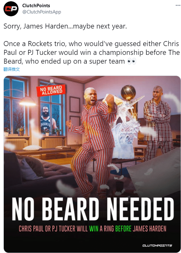 当然这还不是最扎心的,这张漫画的配文是:对不起,哈登,你只能等到明年了,曾经的火箭三巨头,谁能想到保罗和塔克先进入决赛,而且哈登加入的是一支超级球队。