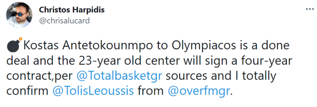 经历了三年的冷板凳,字母弟也不想再浪费自己的职业生涯。目前,他正跟随希腊队征战奥运落选赛,并最终和奥林匹亚科斯男篮签下了这份为期4年的合同。他将返回欧洲,迎接新的挑战。