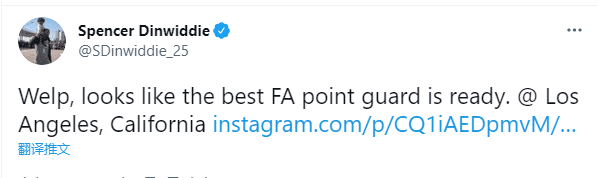 JRS直播网讯 丁威迪更细社交媒体,晒出自己在加州洛杉矶训练的照片,并且明确表态:呃,看起来自由市场上最好的控卫已经准备好了。