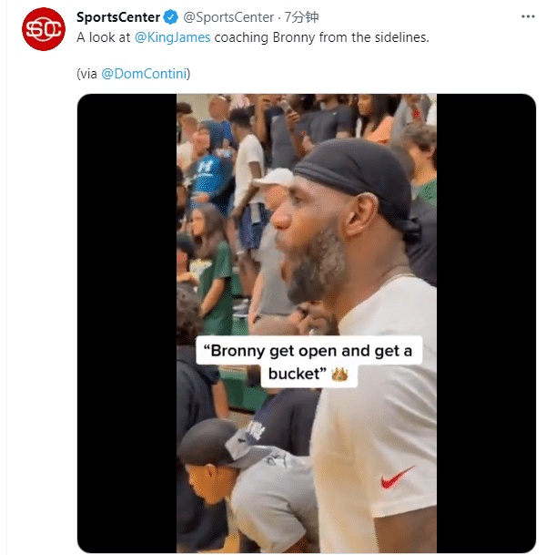 JRS直播网讯 北京时间7月3日,詹姆斯一家又来到现场看两个儿子打比赛,这一次比赛地点是在詹姆斯的母校圣文森特-圣玛丽高中;詹姆斯不仅坐场边观战,而且在球场上指导布朗尼,假装拿球演示进攻,拍屁股动作太风骚了;场边指导后突然笑了。