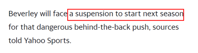 JRS直播网讯 北京时间7月2日,据NBA记者克里斯-海耶斯报道,由于在西决G6故意推倒保罗,贝弗利将被联盟禁赛。快船的赛季已经结束,因此,禁赛处罚将在下赛季开始后生效。