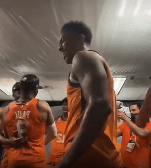 不得不说这支太阳能走到现在,团队氛围是很重要的一点,几位年轻球员都不张狂,对保罗尊敬且信赖,从之前他们每次胜利都给保罗发视频就能看出来!今日赛后,他们在更衣室内尽情地庆祝+狂欢,喷洒香槟如夺冠了一般,就像克劳德说的好好享受今晚,然后准备总决赛!