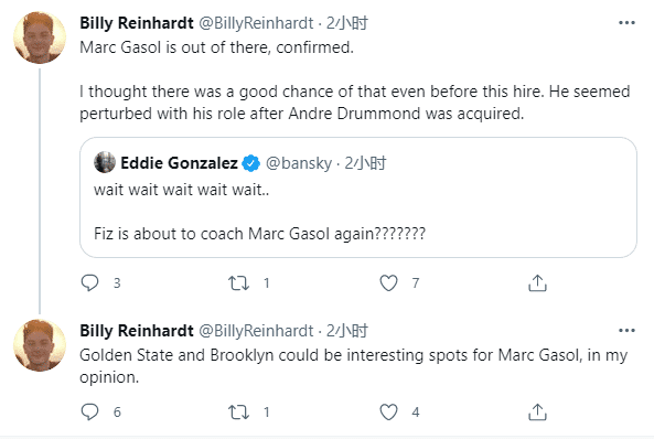 据篮网记者Billy Reinhardt报道,马克-加索尔已经确定离开湖人,原因是德拉蒙德加盟后他对自己的队内角色很不满,小加有可能加盟篮网或者勇士。