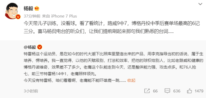 JRS直播网讯 北京时间6月30日,NBA东部决赛老鹰主场大胜雄鹿,追平总比分双方将来到天王山之战。此役特雷杨受伤没有出战,而老鹰在字母哥受伤之后,一举拉开分差奠定胜局。不过赛后,国内篮球名嘴杨毅,却引发了大争议!