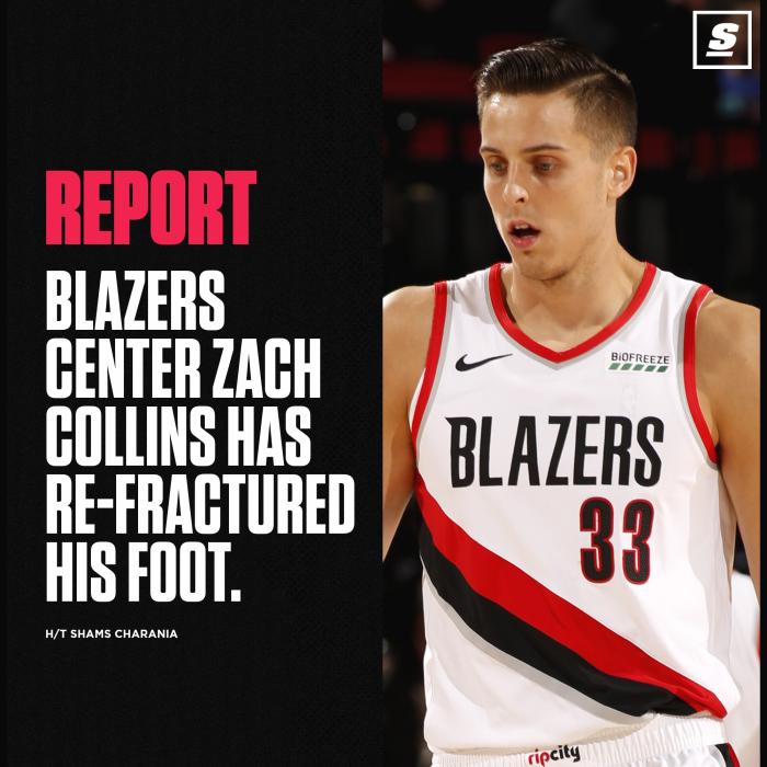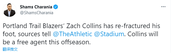 JRS直播网讯 北京时间6月30日,据名记shams报道,开拓者中锋扎克-科林斯再次遭遇脚部骨折,而今年休赛期,他的合同到期将成为自由球员;科林斯接连遭遇骨折,这伤病将影响他的新合同,年仅23岁却沦为玻璃人。