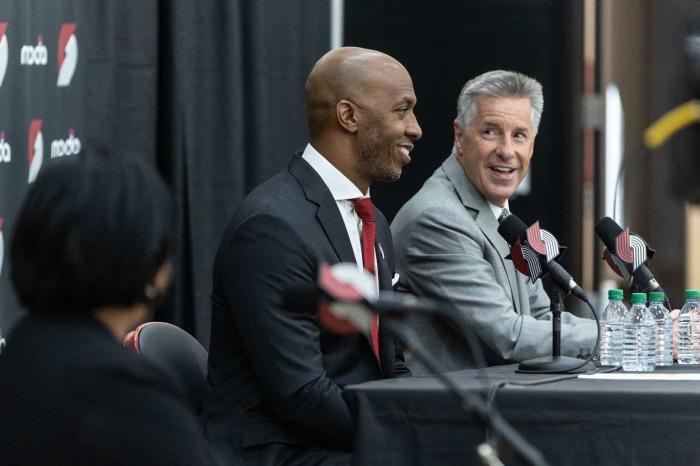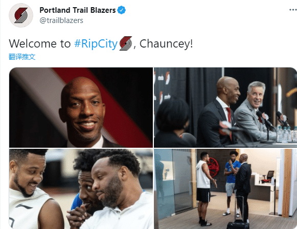 JRS直播网讯 开拓者新教练正式亮相,比卢普斯以开拓者主帅的身份召开新闻发布会;开拓者官方晒出四张照片并发推:欢迎昌西来到撕裂之城。