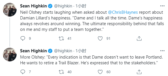 奥尔谢表示:我一直都在和利拉德沟通,利拉德的幸福总是围绕着赢球,而输球和他不开心的责任全都在我;所有迹象都表明,利拉德不想离开波特兰,他想要在开拓者退役,他已经向球队表明了态度。
