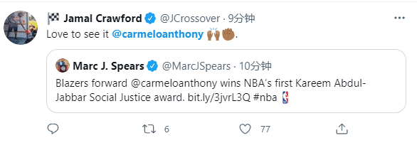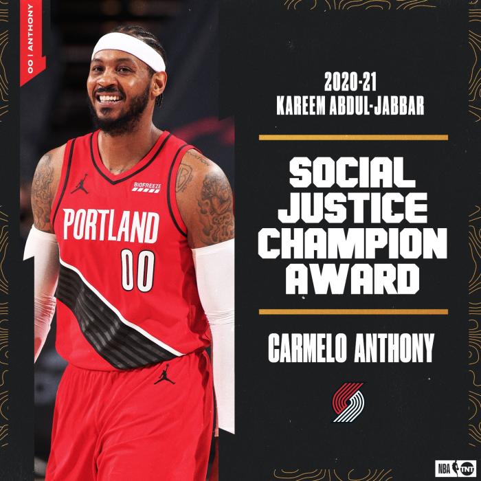 JRS直播网讯 北京时间6月30日,NBA又一项大奖出炉,安东尼赢得以贾巴尔的名字来命名的年度社会正义冠军奖,成为NBA首位获得此项大奖的球员;这一个全新奖项将每年评选一次,表彰那些追求社会正义,维护联盟几十年来平等、尊重和包容价值观的球员。