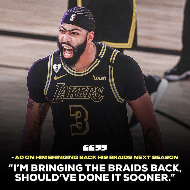 除了号码不变,浓眉在发型方面想回到2019-20赛季的辫发,还调侃说这是他们今年输球的原因。这或许是他想讨个彩头,毕竟今年的这个发型,似乎没有给他带来好运,不但自己遭遇伤病困扰,而且球队也在季后赛首轮出局。