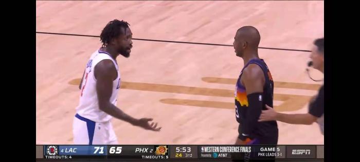 所幸的是裁判的介入没有让冲突升级,在经过回放后,裁判给了贝弗利一个一级恶意犯规,在吹罚犯规之后贝弗利依旧不服气,上前和保罗喷着垃圾话,不过保罗的强硬也让他从垃圾话变成了致敬。