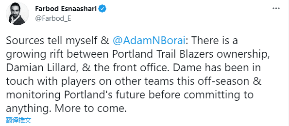 此前快船记者Fabod Esnaashari透露,利拉德和开拓者管理层之前的矛盾越来越大,利拉德已经私下联系了其他球队的球员;在做出任何承诺之前,他会关注开拓者的未来。