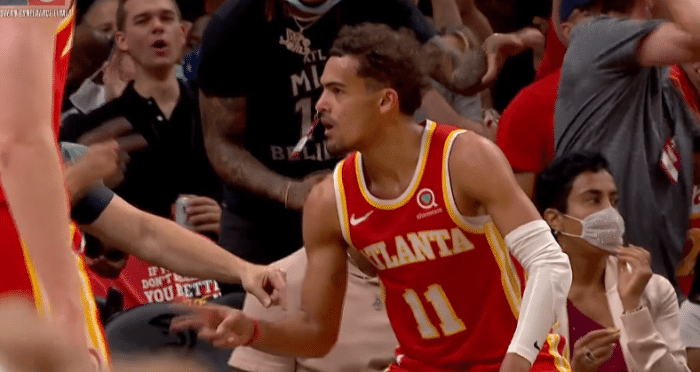 第三节,特雷杨再次开启得分模式,连续投进两记三分,持球强突大洛上演神奇的打板2+1,不到6分钟轰下11分,特雷杨站在场边疯狂庆祝,但他罚球时现场球迷高呼MVP。此节后半段,特雷杨造犯规两罚全中,现场再次响起MVP呼声,不过之后雄鹿再次反扑,特雷杨造犯规再次罚球,踩到裁判的脚导致崴脚,一瘸一拐离场并返回更衣室,但愿特雷杨伤势无大碍。