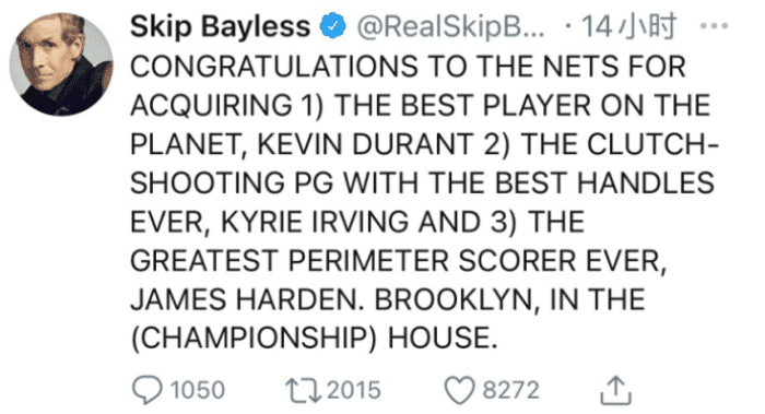 或许是可以在网络上口无遮拦的抨击詹姆斯,吸引人关注的同时本尊还不会找上来,所以Skip的言论也越来越大胆,从一开始的含蓄到后来几乎主要是NBA甚至不是篮球的事情,也可以联系到詹姆斯,嘲讽他一番。