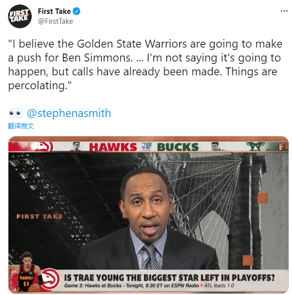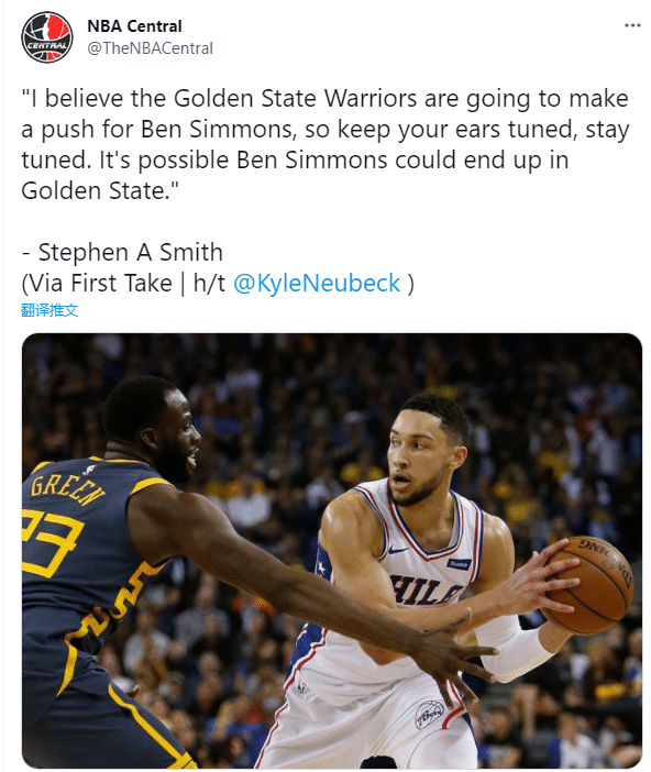 JRS直播网讯 北京时间6月26日,名嘴“美国杨毅”A-史密斯的言论引热议,史密斯直言西蒙斯最终可能加盟勇士,而且透露勇士已经有人打电话询价,更是发推直言:我相信勇士正在积极推动关于西蒙斯的交易。