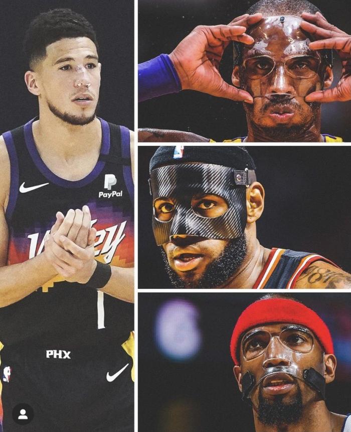 西决第二场,布克在进攻时与贝弗利相撞,鼻子被撞得血流不止,缝针后重返赛场,最终太阳再次拿下胜利;不过布克的鼻子早已肿的不成样子,而且鼻子被撞歪了;为了保护受伤的鼻子,因此布克将会戴面具出战西决G3,在洛杉矶斯台普斯球馆,布克戴面具出战,如此画面不禁让人想起科比。