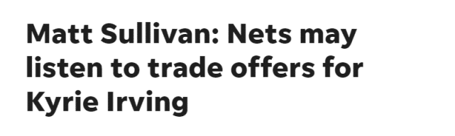 篮网的跟队记者Kristian Winfield显然是支持前者的观点,他转发Sullivan的报道时写道:“(交易欧文)将是篮网队史上最大的错误。”大家认为篮网是否应该至少听取关于欧文的报价呢?