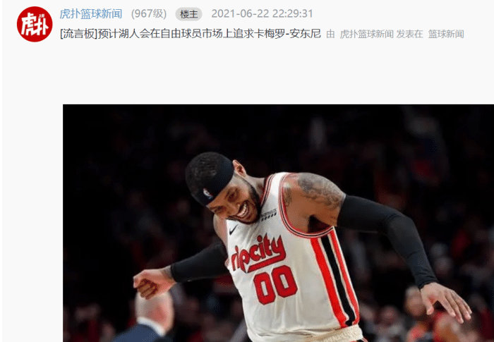 记者Evan Massey报道“有消息称湖人将在休赛期交易库兹马,这并不奇怪,他们预计会将安东尼列为目标,来顶替他(库兹马)”一位球探表示“我认为他对于湖人来说会是一个很好的补充,如果湖人能够底薪将其签下,将是低风险高回报的操作。”