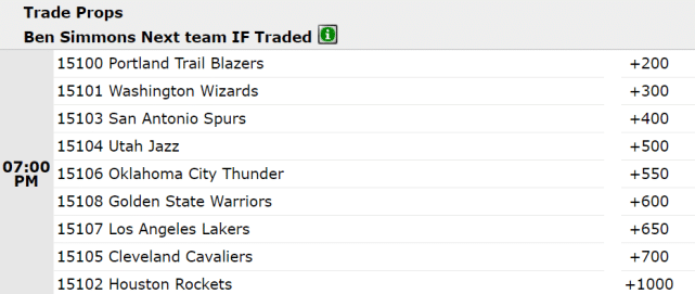 位居第二的是奇才(+300),排名第三的是马刺(+400)。波波维奇向来会调教球员,或许西蒙斯到了马刺会成为一个更好的球员。排在第4至9位的依次是爵士(+500)、雷霆(+550)、勇士(+600)、湖人(+650)、骑士(+700)和火箭(+1000)。西蒙斯和詹眉的经纪人都是里奇-保罗。西蒙斯的组织能力毋庸置疑,但湖人真能忍受他的投篮短板?火箭和费城曾经商讨过西蒙斯交易哈登,但由于当时火箭还索要马克西,费城没有同意交易。