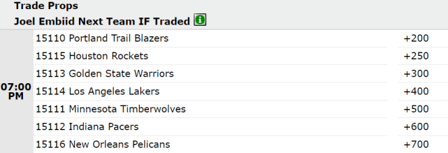 有趣的是排名第一的同样是开拓者(+200)。开拓者的努尔基奇不满现状,有可能离开,五号位要是有恩比德这样的球星,实力应该会提升不少。位居第二的是火箭(+250),火箭一直对恩比德感兴趣,球队历史上也有过多位很有统治力的中锋,包括姚明在内。