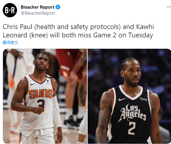 JRS直播网讯 北京时间6月22日,快船和太阳先后宣布小卡、保罗两大巨星都缺席西决第二战,但名记克里斯-海耶斯透露小卡目前不用做手术,而且小卡已经在家进行康复训练;海耶斯也表示保罗的状况稳定,很可能在西决G3或者G4复出。