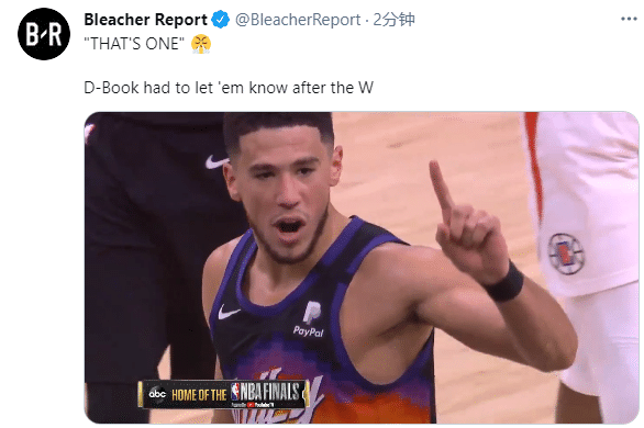 返回更衣室途中,布克第一时间掏出手机,和保罗开视频庆祝胜利,据太阳主教练蒙蒂-威廉姆斯透露,和布克视频对话时,保罗非常兴奋,保罗也伸出一根手指,并且渴望归队。