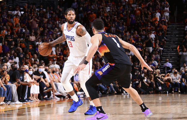 6月21日,西部决赛太阳队VS快船队G1拉开了序幕,太阳队这边缺少了保罗,快船队那边没有了伦纳德,这也让乔治和布克的对决成为了全场的焦点。接连的征战,乔治表现得还是不错的,他拿到了34分,可惜的是第四节乔治明显体力不足,他5投0中,仅仅拿到了1分,而布克这边则展现出年轻人的优势,布克全场比赛拿到了40分13篮板11助攻的三双帮助球队获胜。