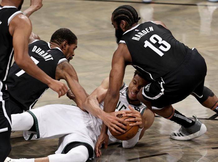 篮网开场被打6-0,杜兰特打进中投和三分,连得5分强势回应,哈登造犯规三罚全中,乔-哈里斯三分开火,篮网11-0反超比分,字母哥带队5-0追平比分,随后两队展开拉锯战;杜兰特首节7中4拿到10分,哈登3中0靠罚球拿到7分(7罚7中)。