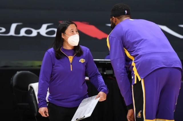 妮娜-谢已经为湖人工作十几年,她先负责湖人发展联盟球队的健康保健规划,随后在湖人担任训练师助理,2019年8月,她获得晋升,成为湖人的首席训练师。去年10月,湖人成功夺冠,妮娜-谢也成为了美国职业体育史上第一位冠军球队的女性首席训练师。