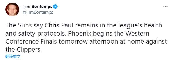 JRS直播网讯 北京时间6月20日,太阳和快船西决就要来了,不过小卡和保罗两大超巨都将缺席西决G1,小卡没有随队前往客场,继续留在洛杉矶养伤,保罗则仍旧处于隔离中,虽然太阳主帅没有宣布保罗缺战西决第一场,但布克、克劳德都已做好保罗缺阵的准备。